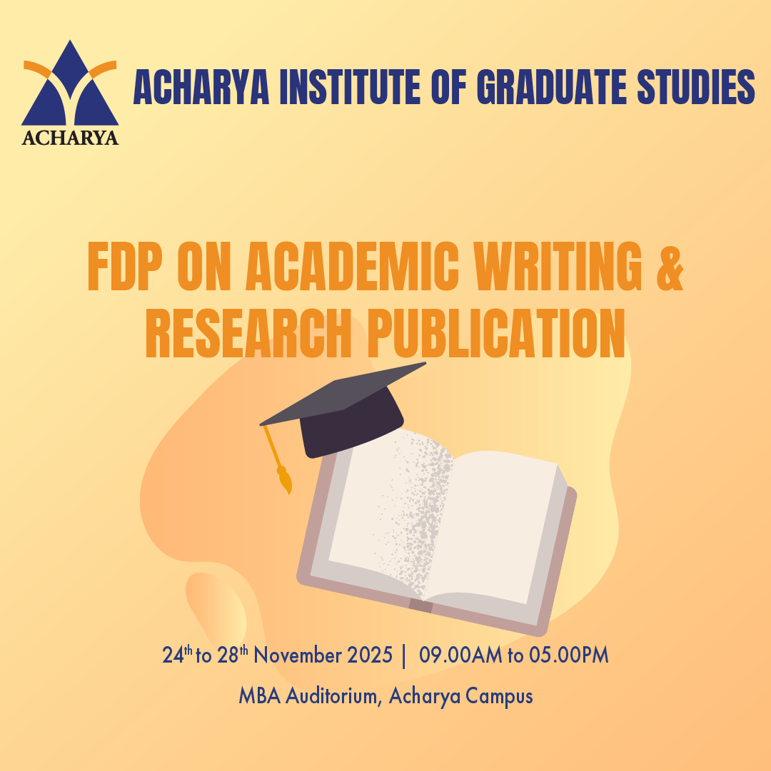 The Five-Day Faculty Development Program (FDP), “Bridging Theory and Practice: Effective Teaching in English Studies,” is a transformative 3-day event designed for English faculty and postgraduate students. Organized by Acharya Institute of Graduate Studies, this FDP offers a dynamic platform to explore innovative approaches in English studies.