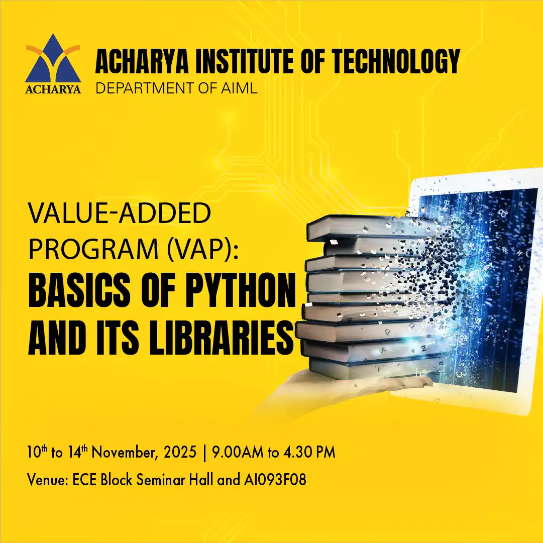 The Value-Added Program (VAP) on Basics of Python and its Libraries, organized by the Dept. of Artificial Intelligence and Machine Learning, aims to strengthen students’ foundational programming skills.
