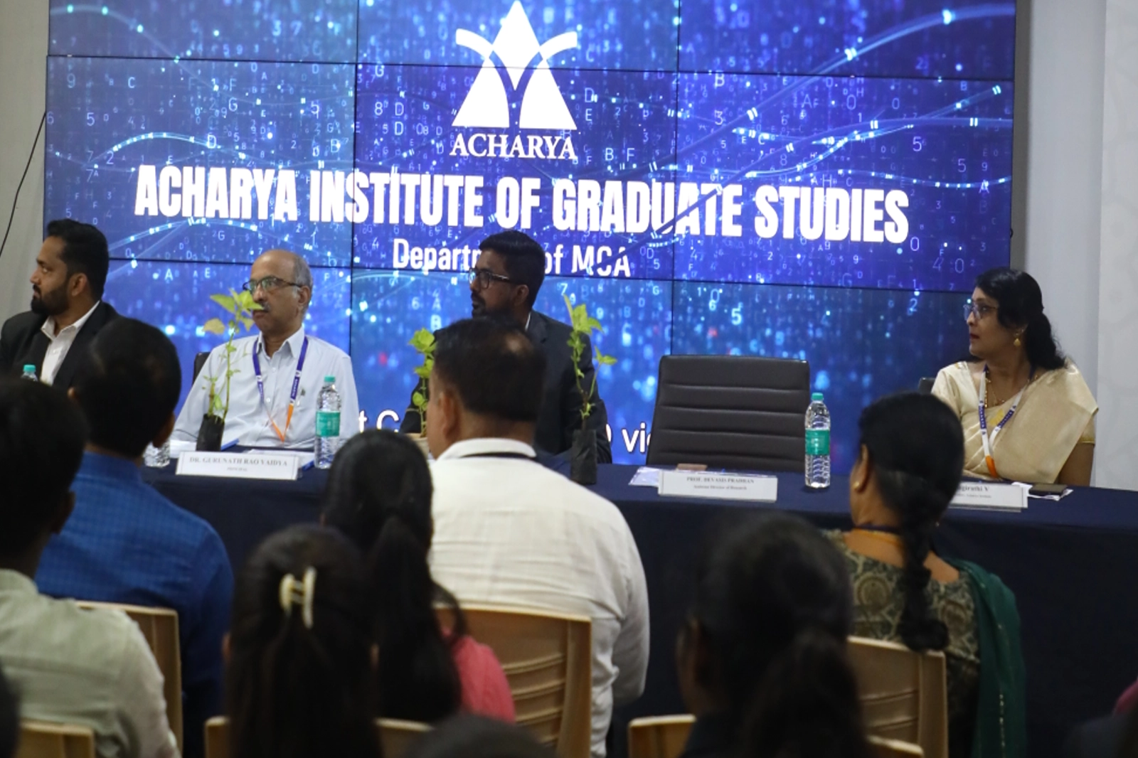 About the Department of MCA: The Department of Master of Computer Applications (MCA), Acharya Institute of Graduate Studies, we are dedicated to providing an industry-aligned academic experience that empowers students to thrive in the ever-evolving field of information technology. Our curriculum, guided by the Acharya ethos of "fueling the quest for knowledge", combines academic rigor with hands-on learning, emphasizing emerging technologies, research, entrepreneurship, and industry relevance. With a team of experienced faculty, state-of-the-art infrastructure, and strong placement support, we ensure that our students are not only prepared for the job market but are also future-ready.