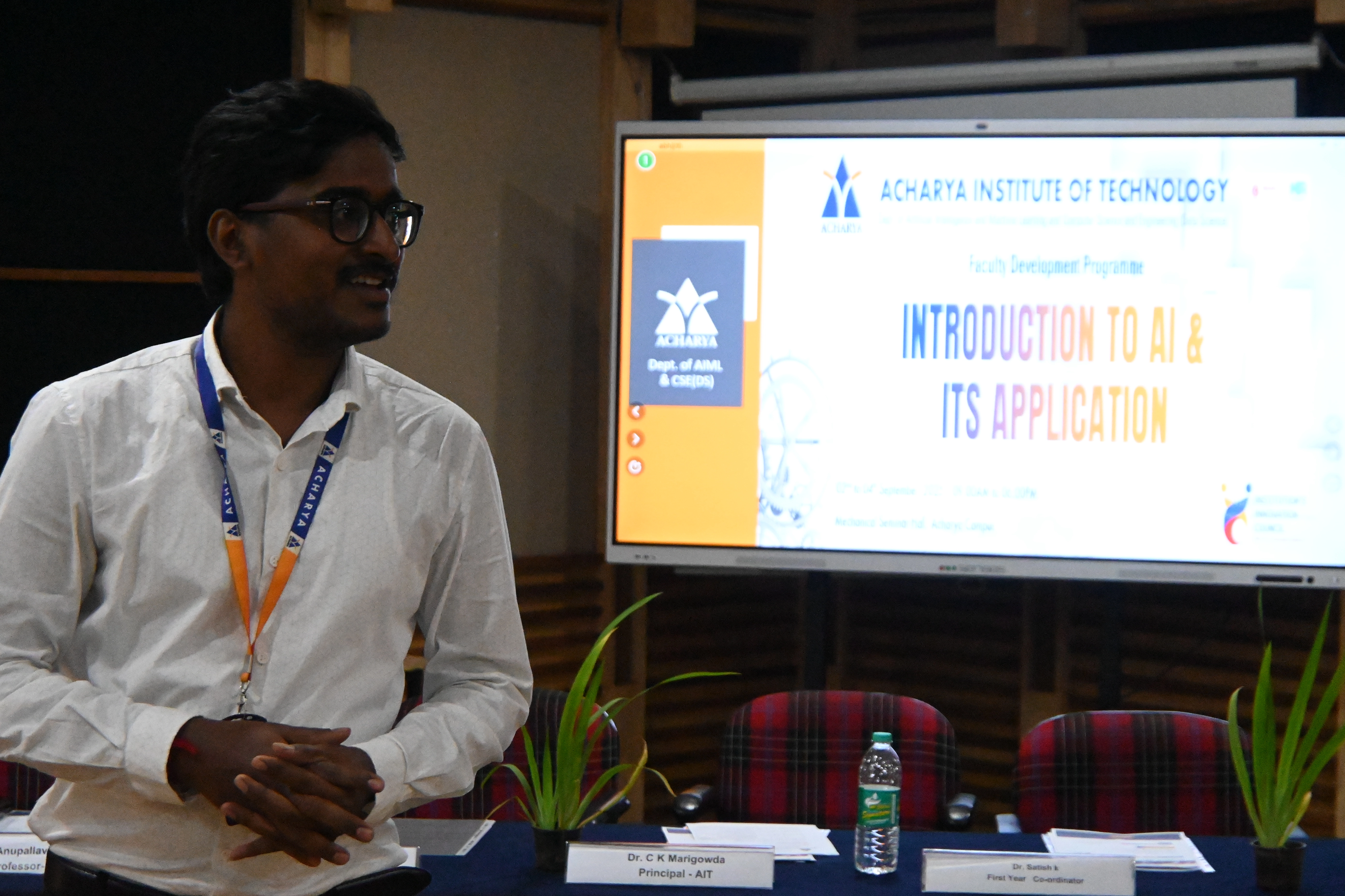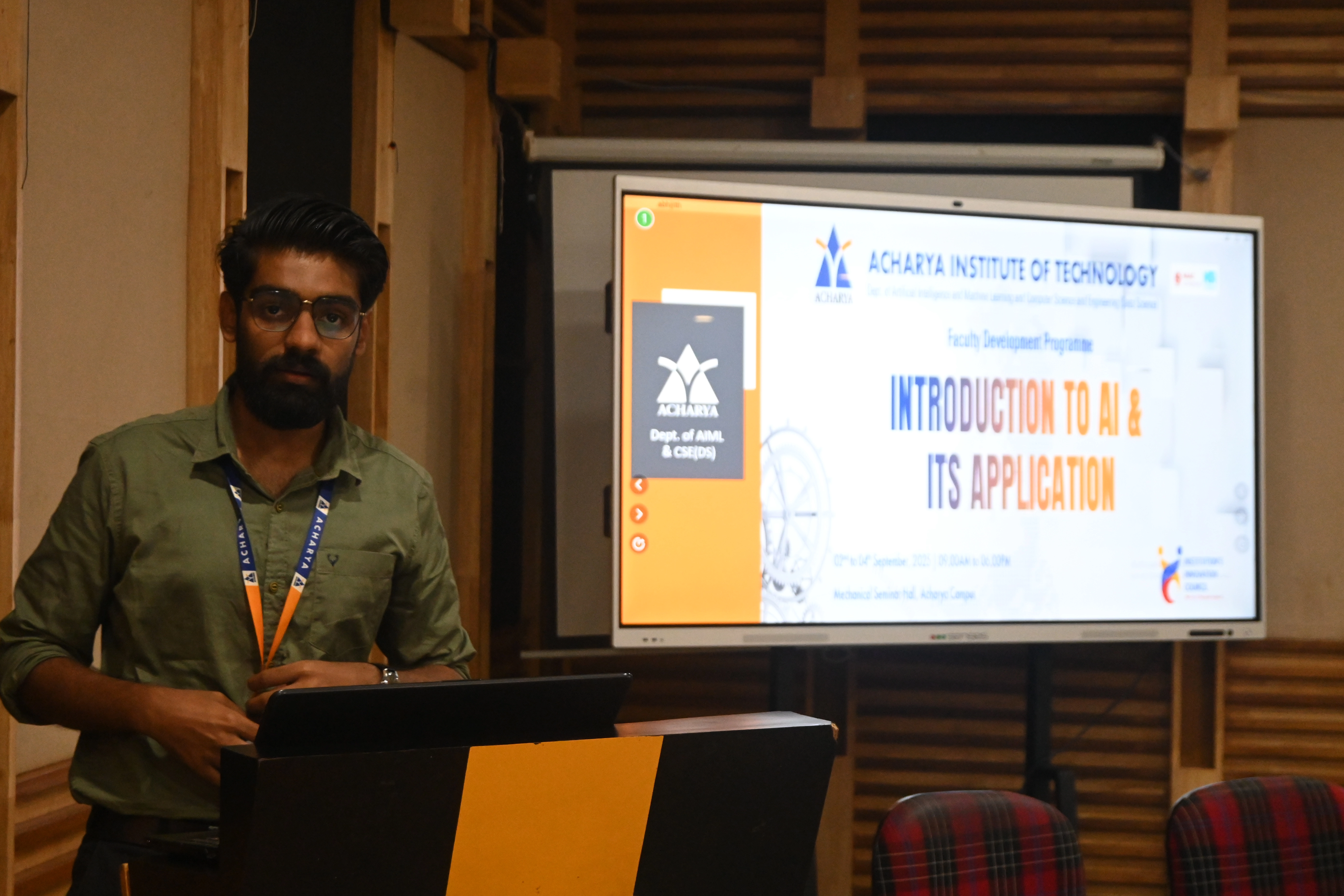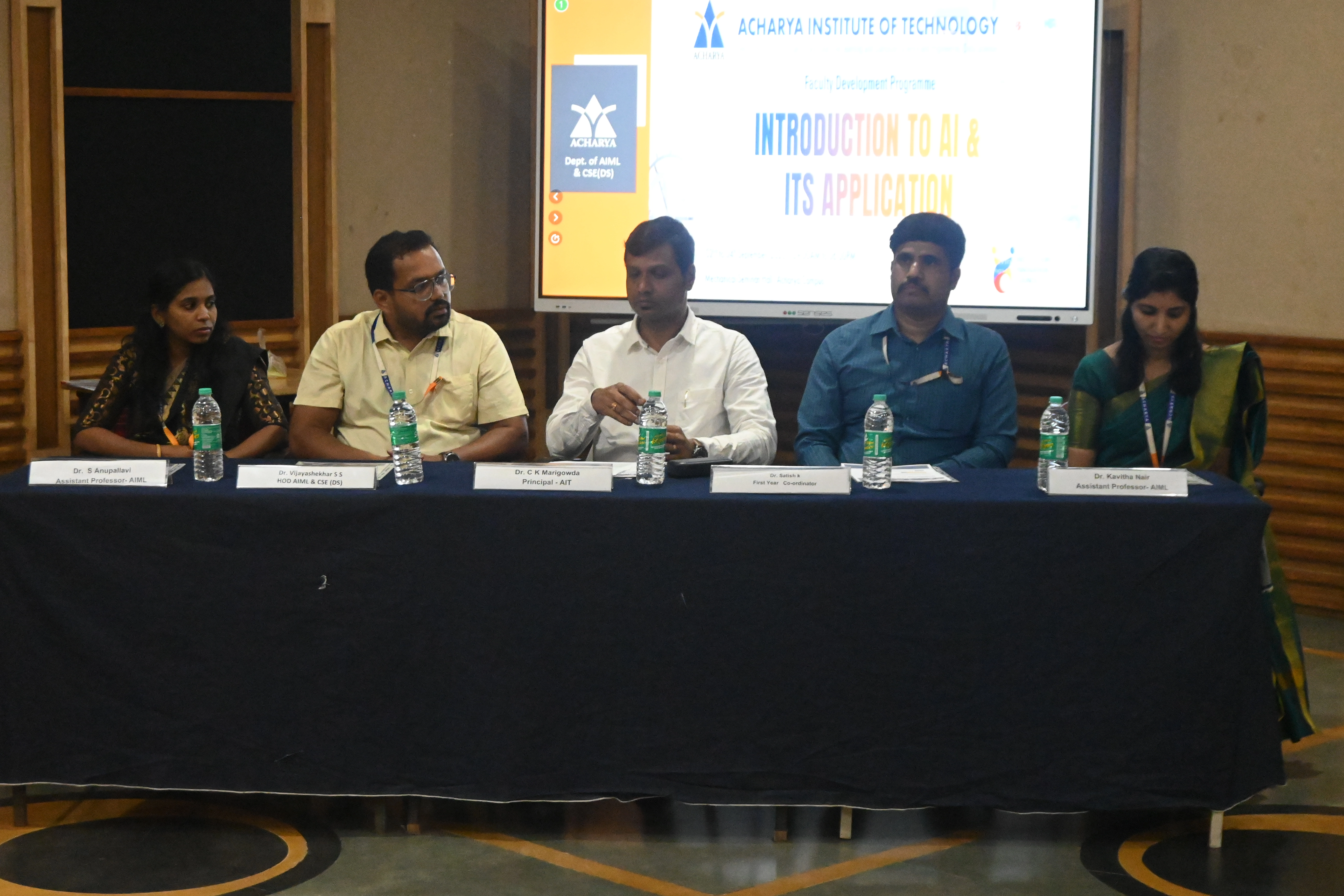 The Department of Artificial Intelligence & Machine Learning and Computer Science & Engineering (Data Science) successfully conducted a 3-day Faculty Development Programme on “Introduction to AI and its Application” at Acharya Institute of Technology. The sessions provided faculty members with valuable insights into AI fundamentals, Machine Learning techniques, and practical applications, empowering them to integrate AI-driven innovations into teaching, research, and academic development.