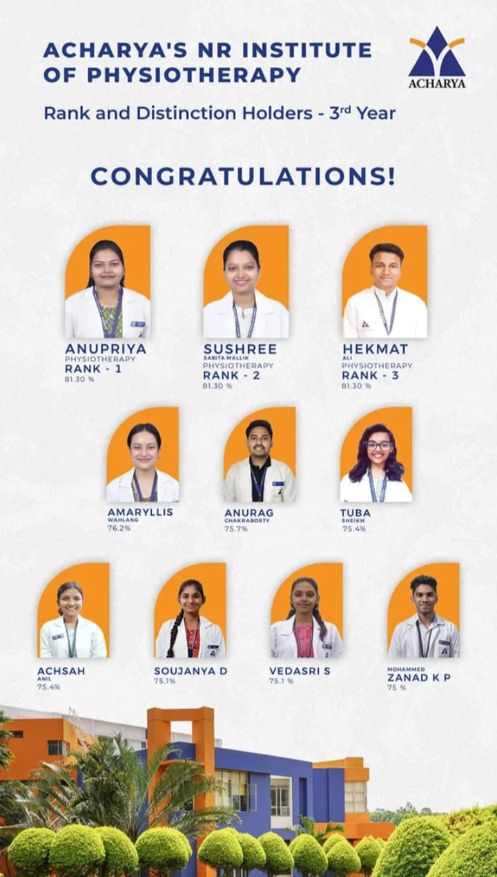 Acharya’s NR Institute of Physiotherapy honors its rank holders and distinction students for their exceptional achievements. Their dedication and excellence set new benchmarks in